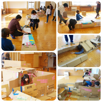 段ボール迷路に挑戦!