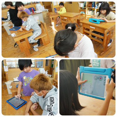 ビスケットでは、まず自分で絵を描き、その絵に動きを加えるプログラムを作成します。児童たちは思い思いんに絵をかき、どのように動かすかを考えながら、熱心にプログラミングに取り組んでいました。